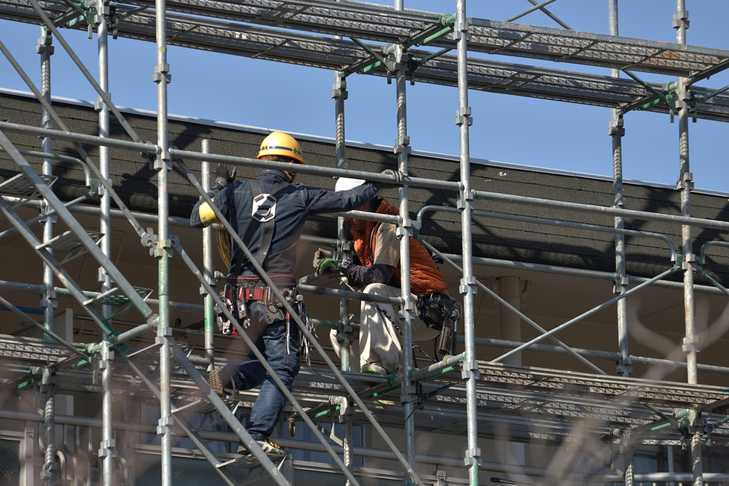 戸建住宅・集合住宅・中規模物件を中心に、適切な資材選定と点検で安全性を高め、メッシュシートや養生にも配慮した足場工事に、規模の大小を問わず対応しています。